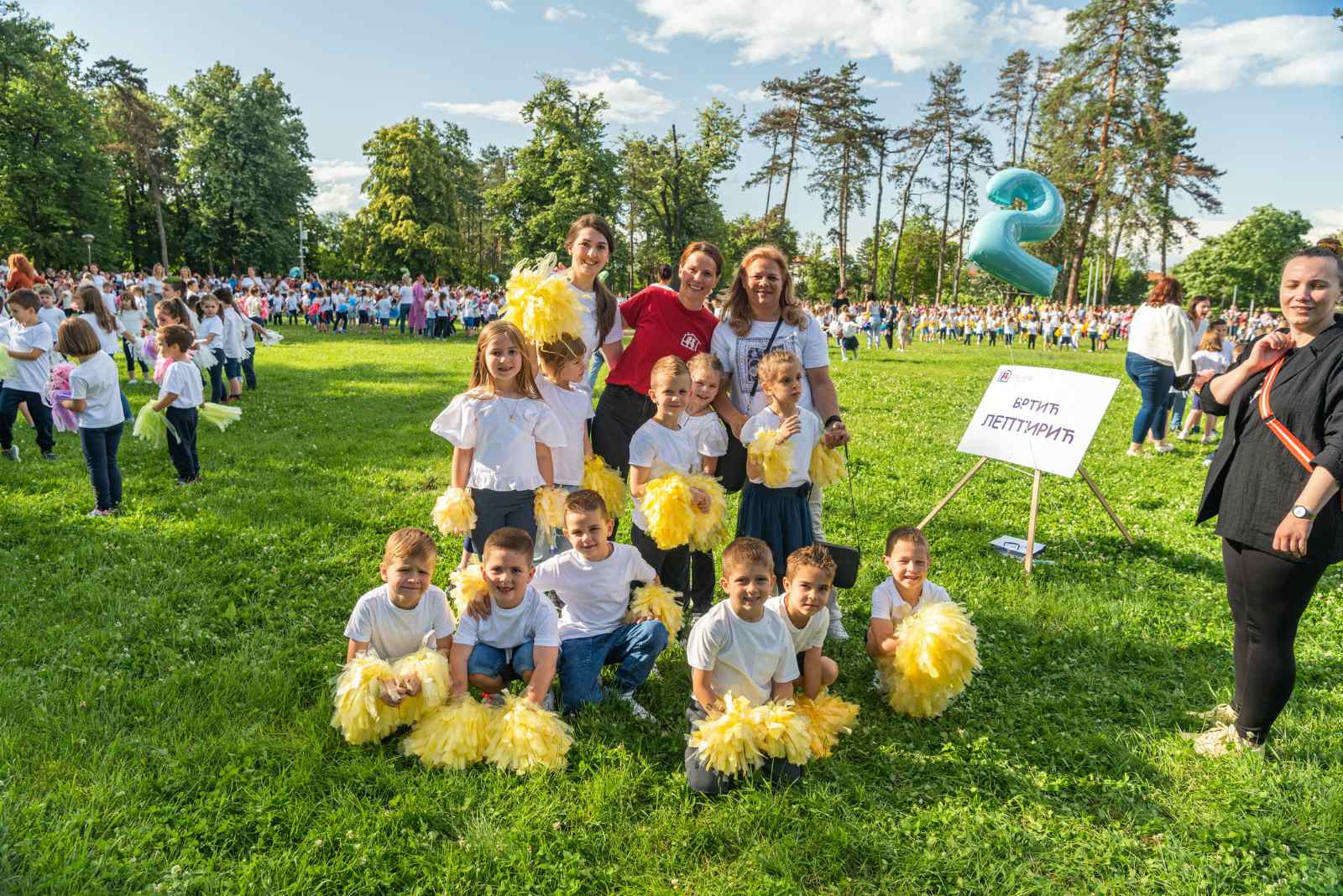 “експерти” за то. Окупљамо се већ 14 година крајем маја мјесеца или почетком јуна како би показали шта смо научили! Срећа нам заиграла!” Тако је и било. Срећа и јесте заиграла на радост свих присутних. Наступали су малишани из наших вртића са својим васпитачима. Уз ове уводне фотографије очекујемо убрзо и “снимак из птичије перпективе” који ће можда најбоље дочарати како је то предивно изгледало.